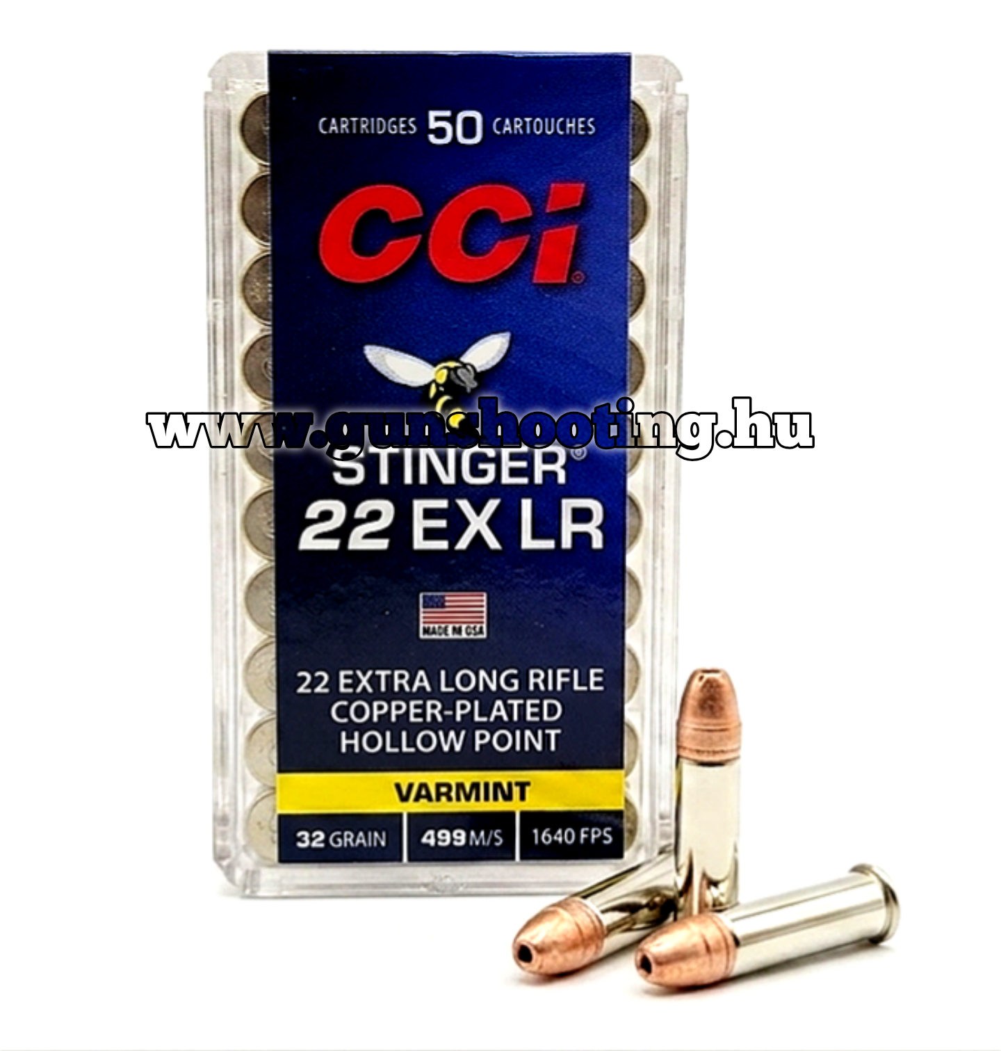 .22 LR CCI Stinger EX LR HP 32gr KÉSZLETEN VAN! Üzletünkben megvásárolható! Árakkal és egyéb információkkal kapcsolatban, személyesen üzletünkben érdeklődjön!