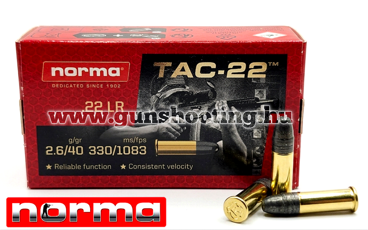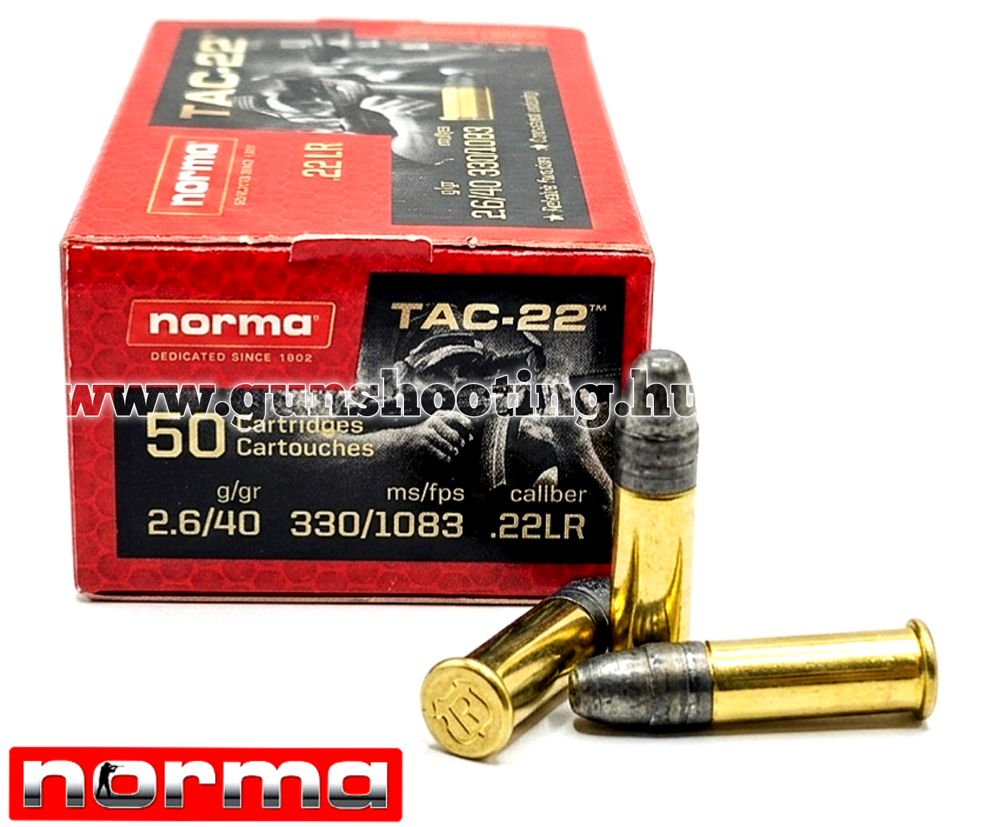 .22 LR Norma Tac-22 2,6g/40gr KÉSZLETEN VAN! Üzletünkben megvásárolható! Árakkal és egyéb információkkal kapcsolatban, személyesen üzletünkben érdeklődjön!
