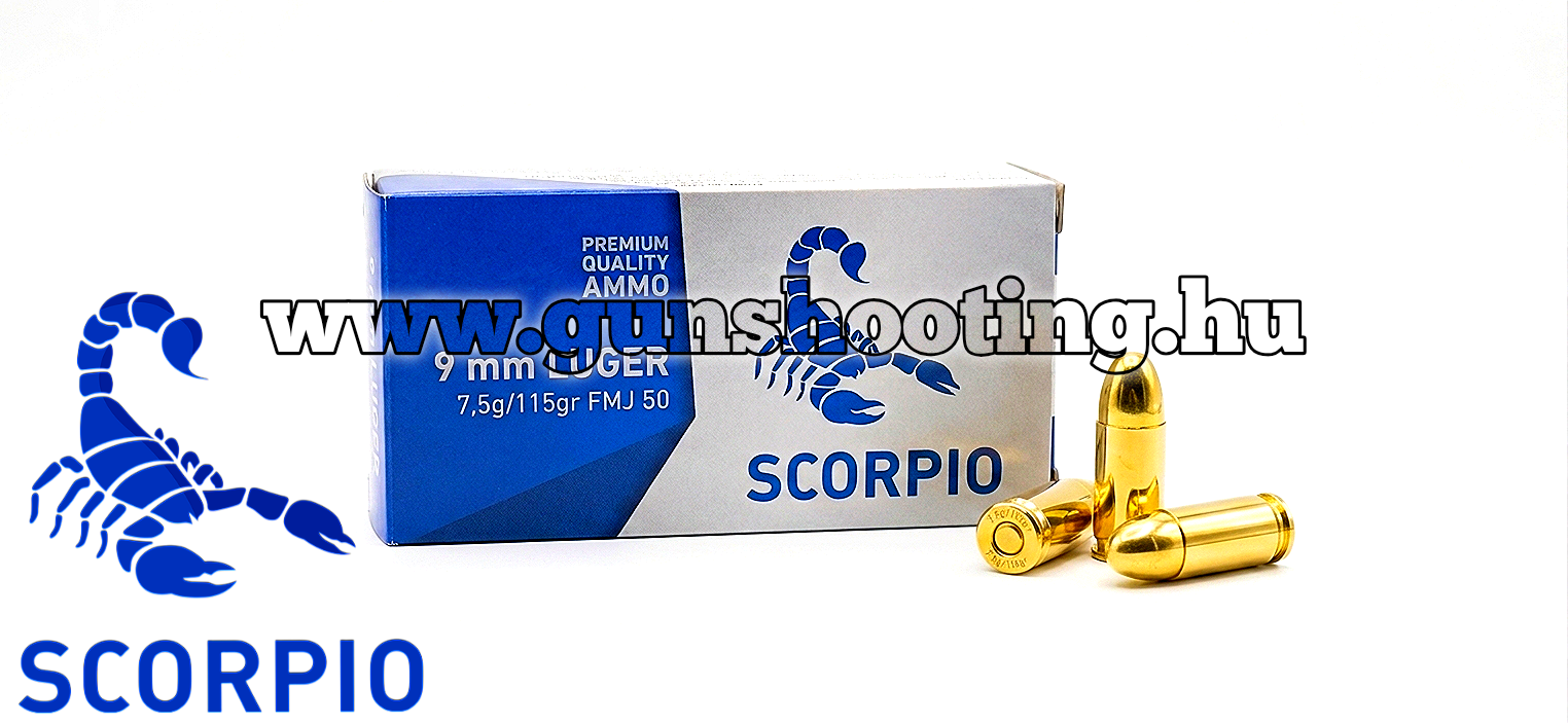 9mm Luger Scorpio FMJ 7,5g/115gr KÉSZLETEN VAN! Üzletünkben megvásárolható! Árakkal és egyéb információkkal kapcsolatban, személyesen üzletünkben érdeklődjön!