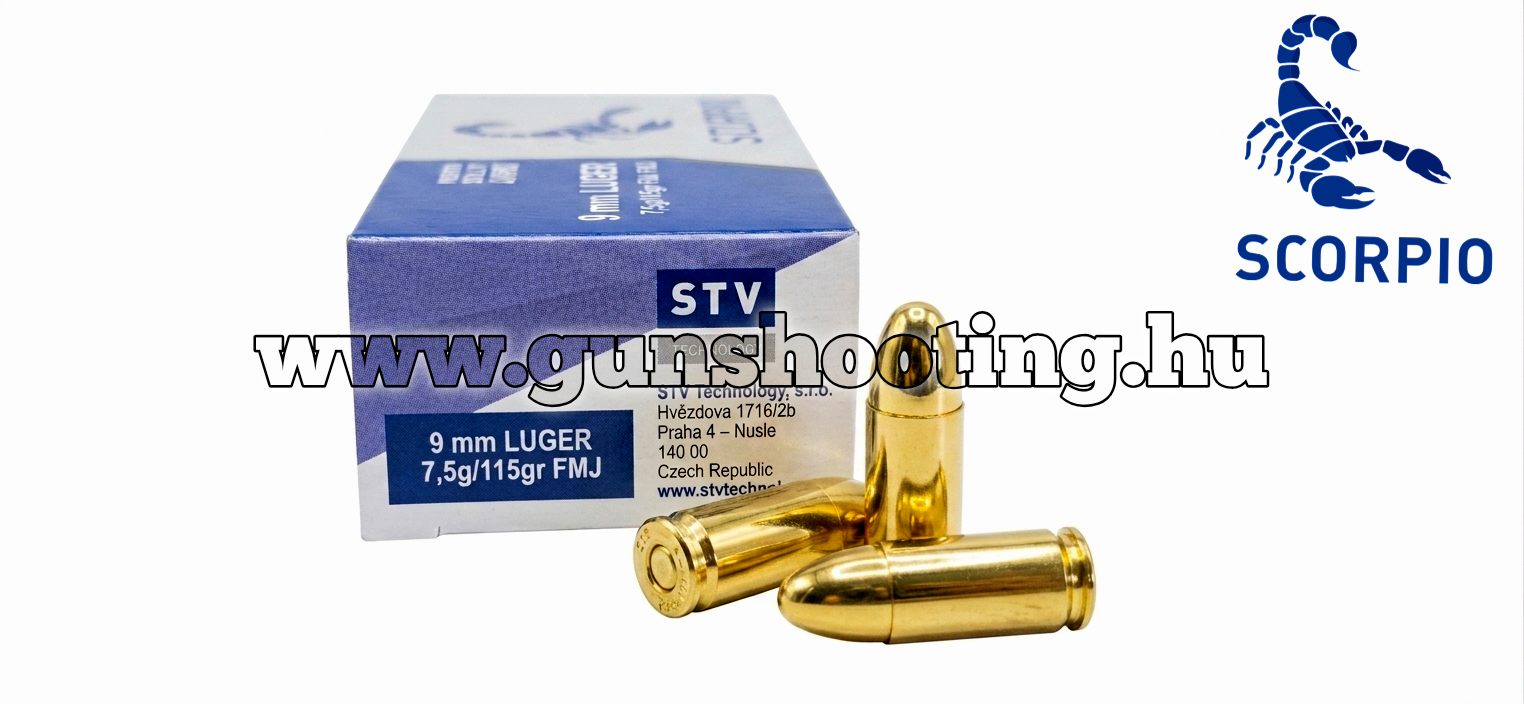 A 9mm Luger (9x19mm Parabellum) kaliberű Scorpio lőszer a cseh STV Technology terméke. Ez a gyártó különösen népszerű az európai sportlövők és lőterek körében, mivel kiváló ár-érték arányt képvisel a tömeggyártott lőszerek piacán. A gyártó modern, füstnélküli lőport használ, amely viszonylag tiszta égést biztosít. Ez kevesebb lerakódást jelent a csőben és a zárszerkezeten, így a fegyver hosszabb ideig marad üzembiztos két tisztítás között.