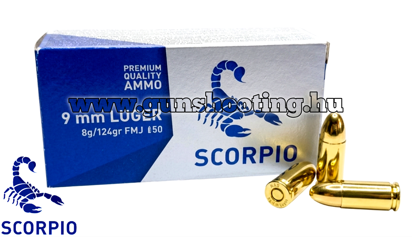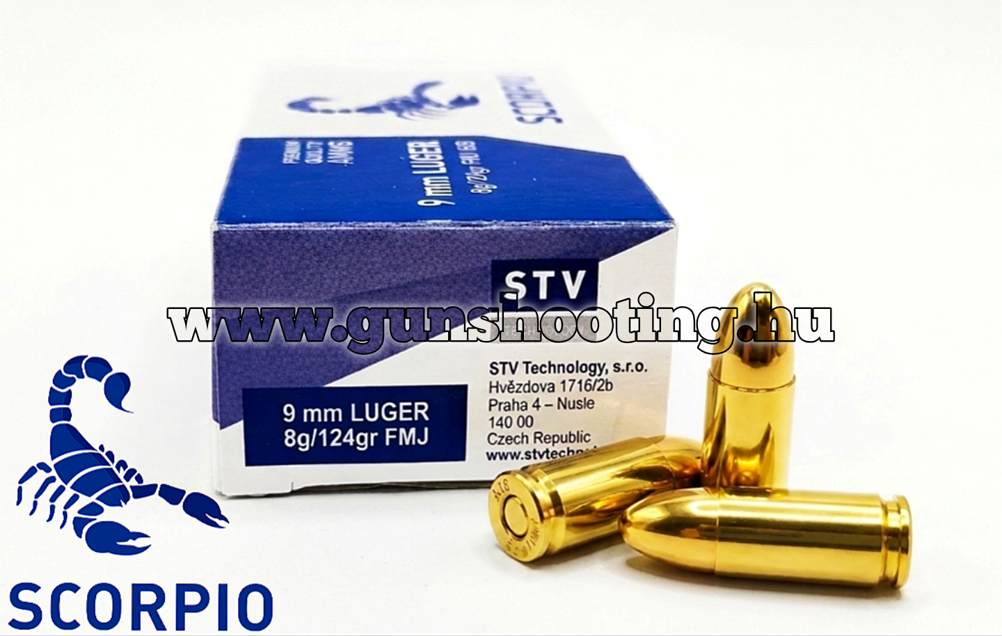 9mm Luger Scorpio FMJ 8g/124gr KÉSZLETEN VAN! Üzletünkben megvásárolható! Árakkal és egyéb információkkal kapcsolatban, személyesen üzletünkben érdeklődjön!