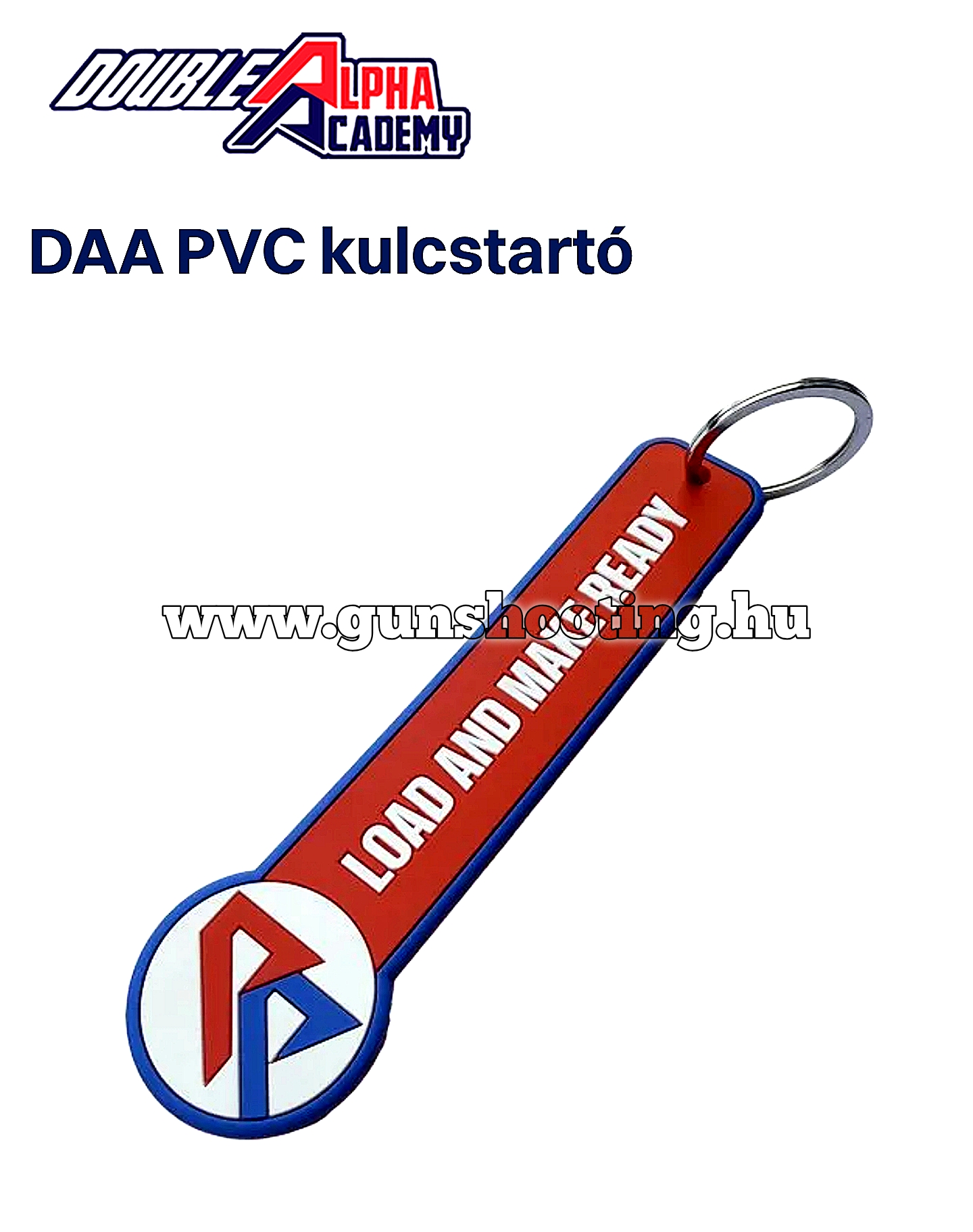 Ez a kiváló minőségű, rugalmas PVC kulcstartó az egyik oldalon a Double-Alpha márkajelzést, a másikon pedig a motiváló "Load and Make Ready" szlogent viseli.