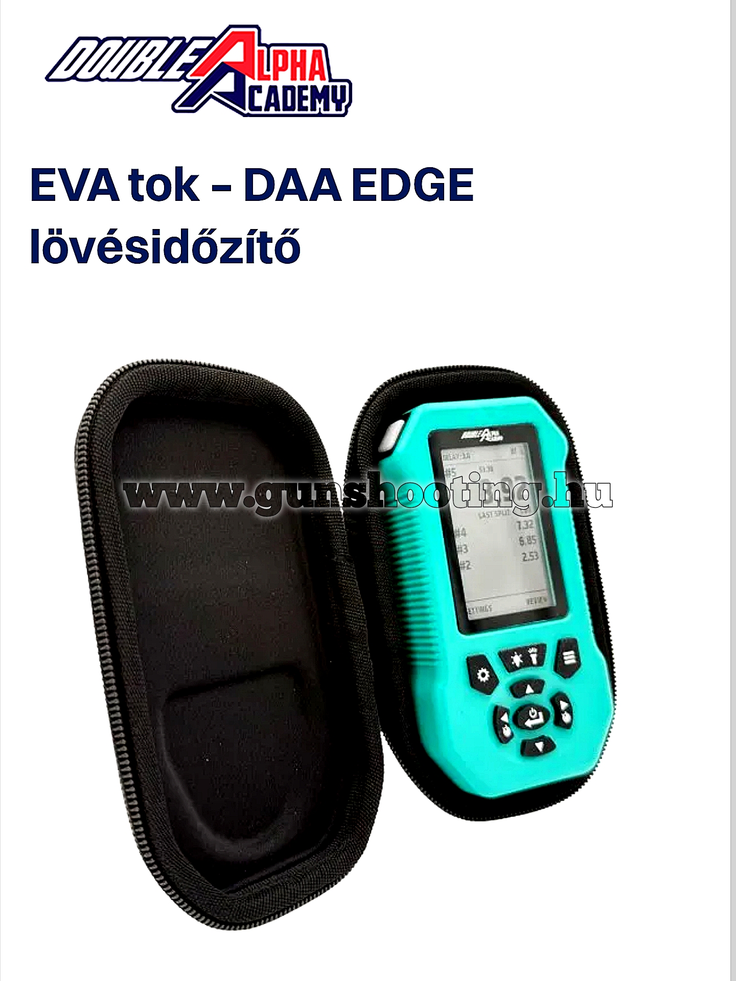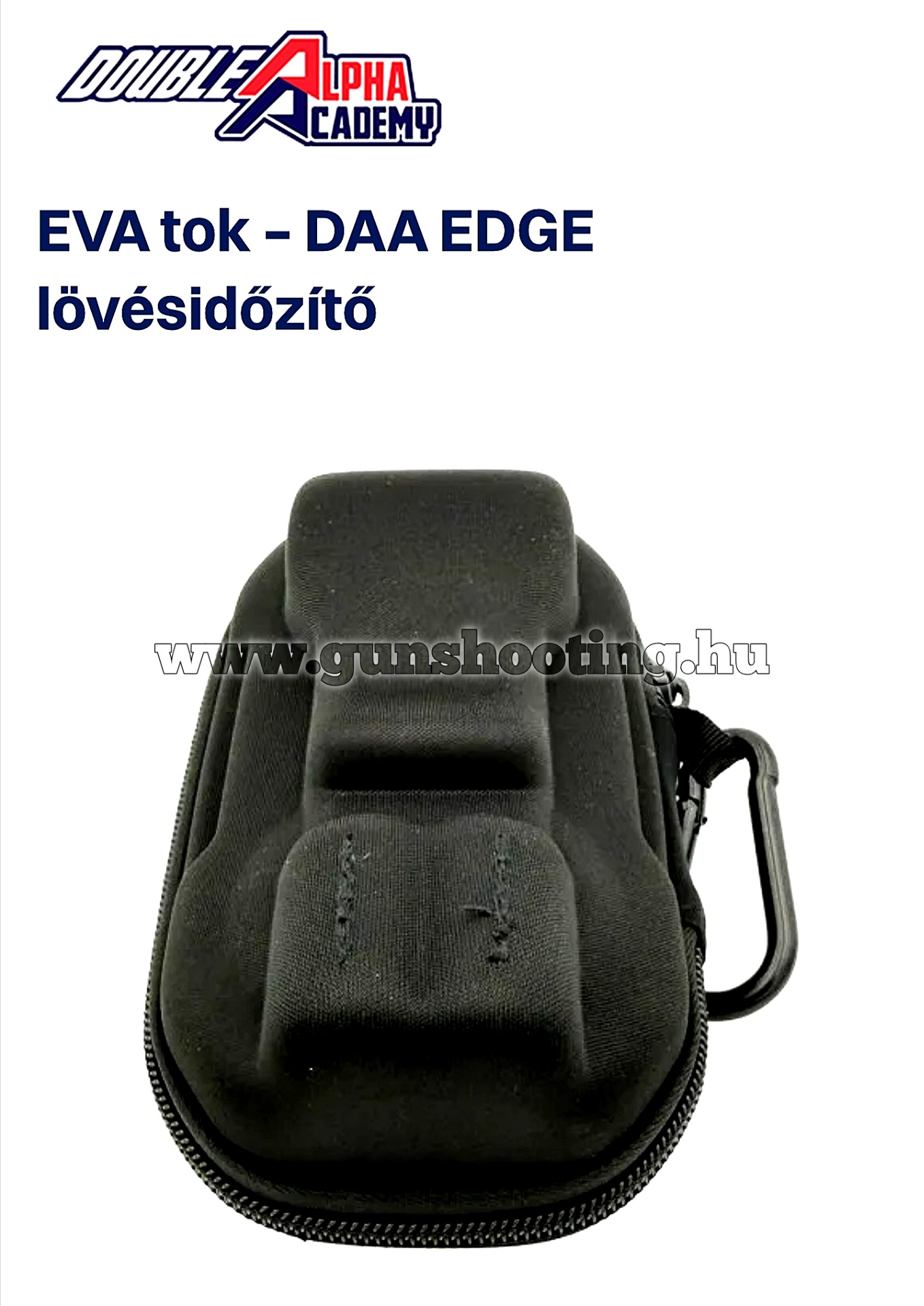 EVA tok megfelelő védelmet biztosít a DAA EDGE Lövés Időzítőnek. A DAA EDGE Lövésidőzítő számára tervezett tokban, pontosan kialakított belső rész található, amely biztonságosan rögzíti az időzítőt, megakadályozva annak mozgását, ütődéseit és karcolódásait szállítás közben.