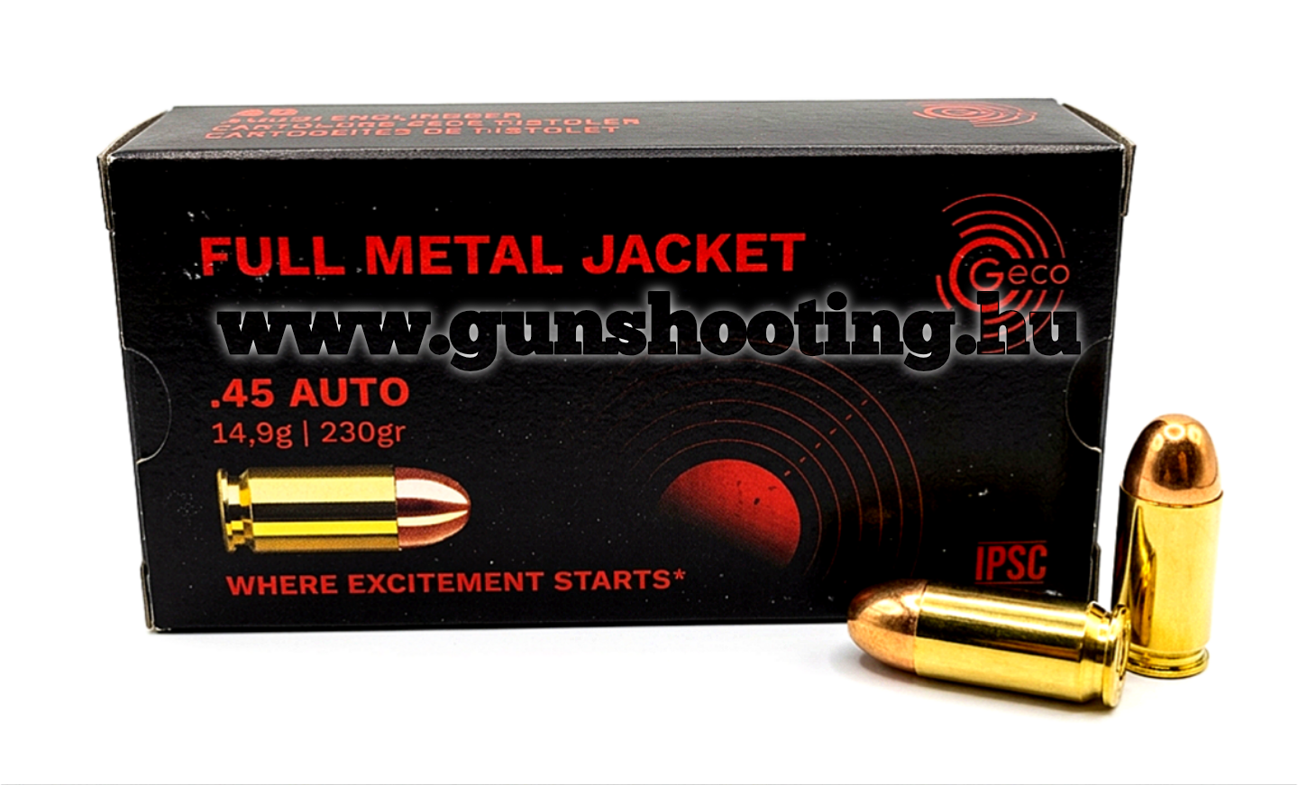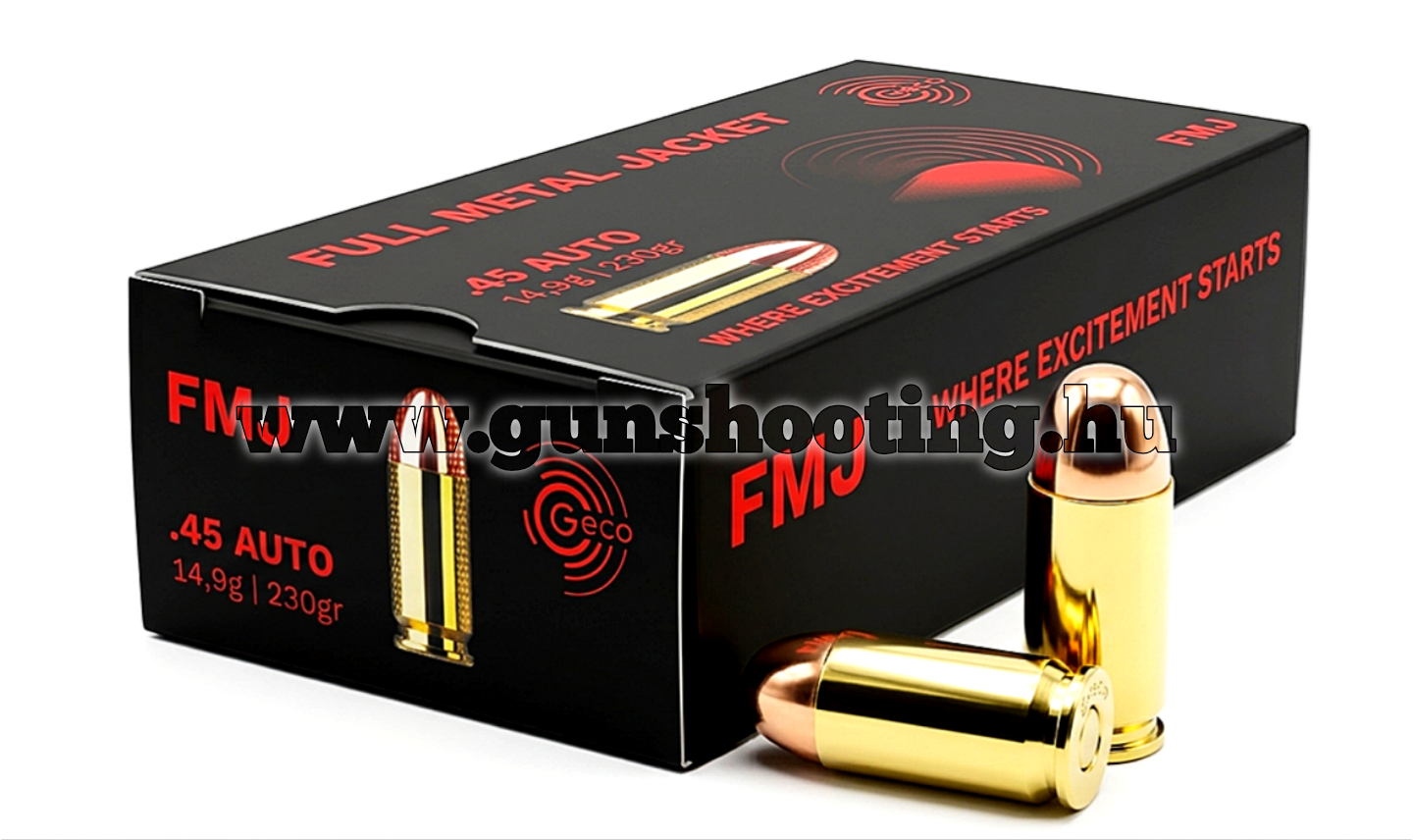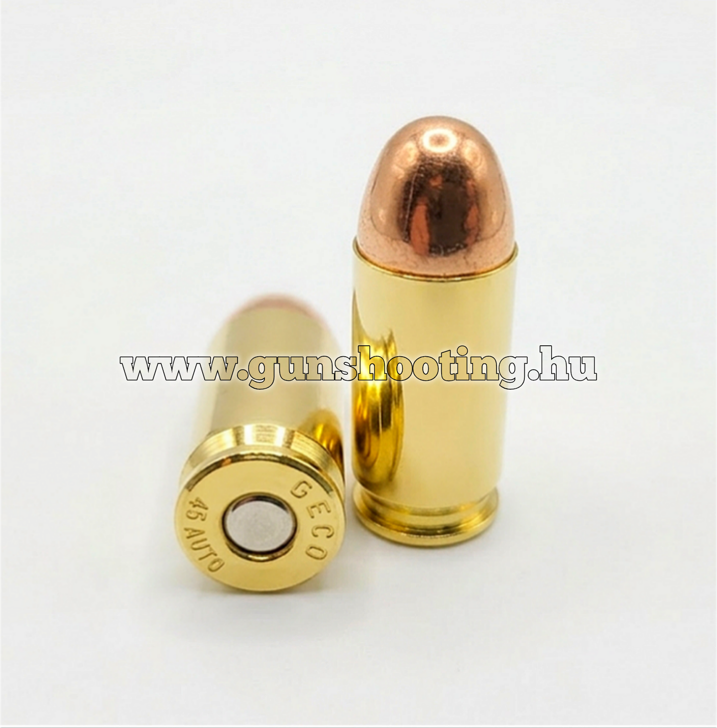 A Geco .45 ACP FMJ 230 grain (14,9 g) lőszer a német precizitás és a tradicionális amerikai megállító erő találkozása. A Geco (a RUAG csoport tagja) kifejezetten a sportlövők és a hivatásos állomány gyakorlatozási igényeire fejleszti ezt a típust, ahol a legfőbb szempont a hibátlan adogatás és az egyenletes gyújtás.