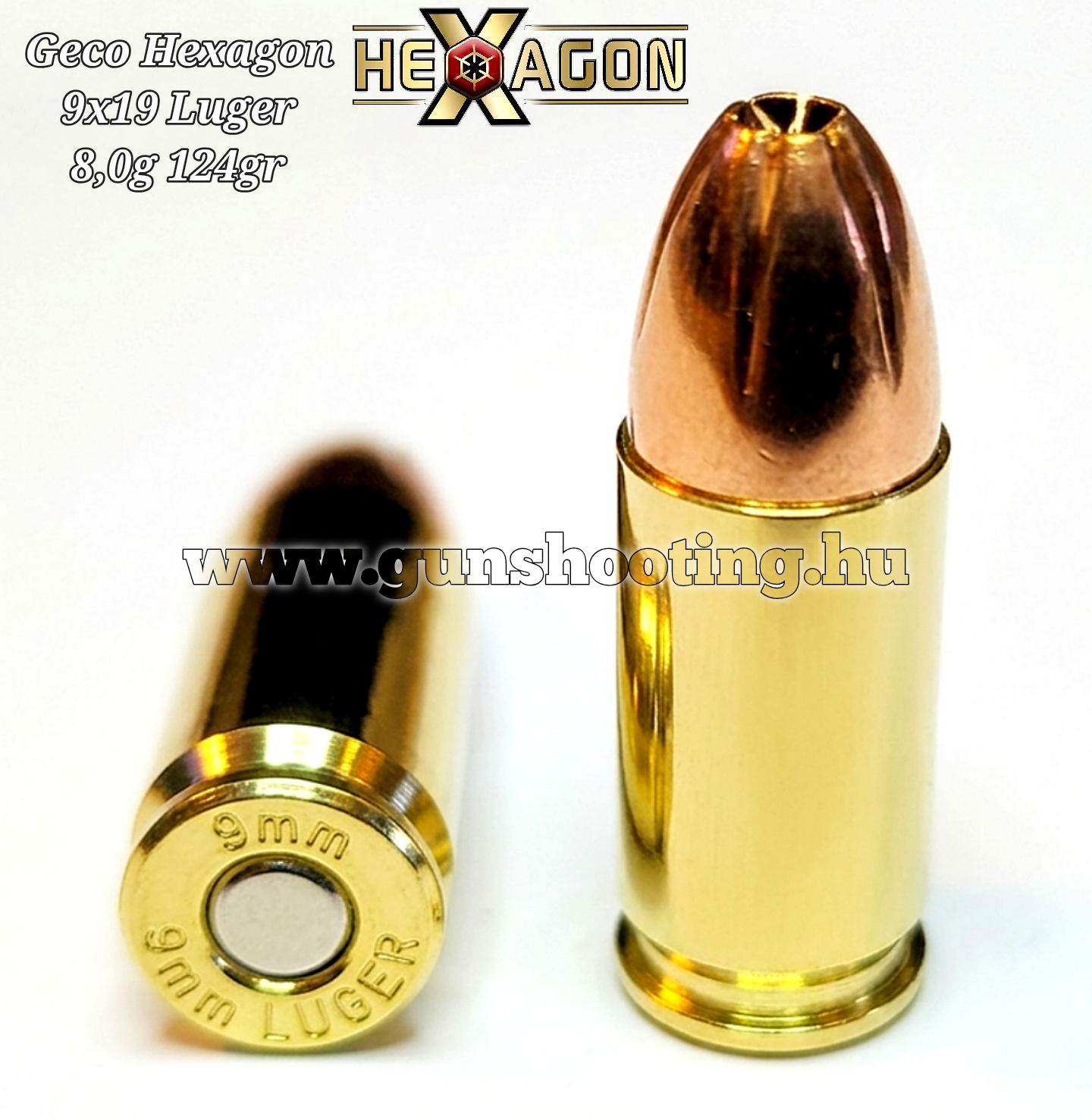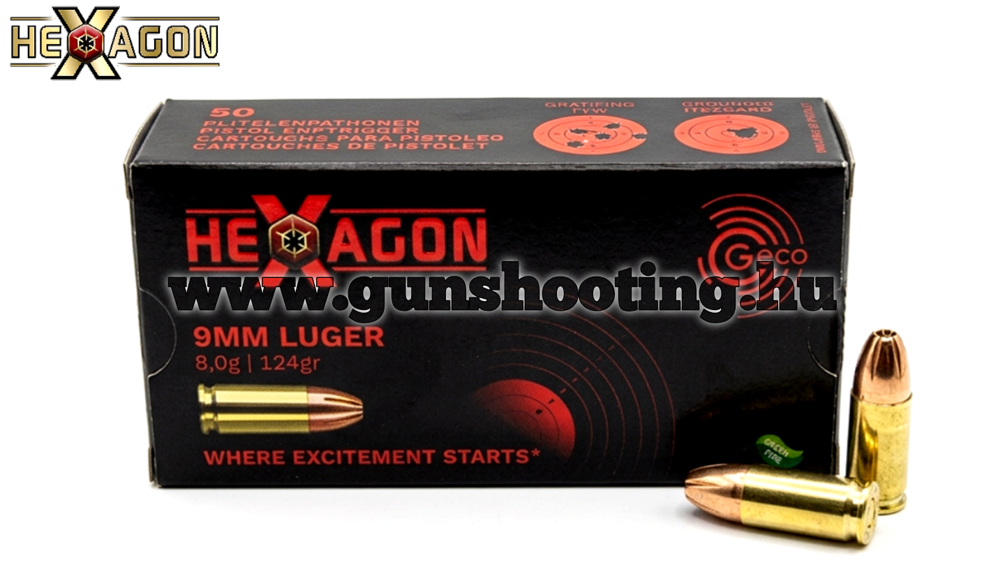 Geco 9mm Luger Hexagon 8g 124gr KÉSZLETEN VAN! Üzletünkben megvásárolható! Árakkal és egyéb információkkal kapcsolatban, személyesen üzletünkben érdeklődjön!