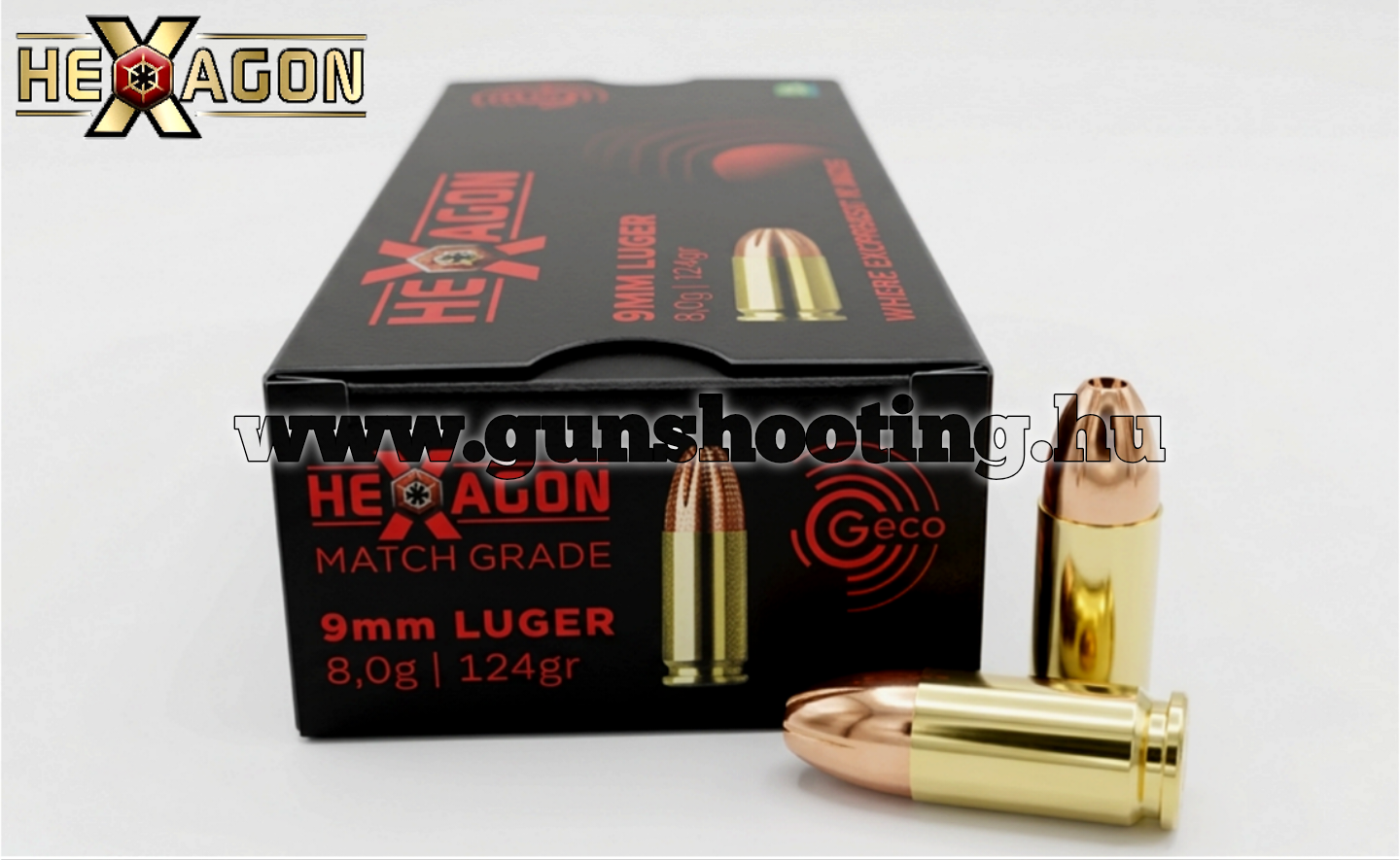 A Geco 9mm Luger Hexagon 8,0g (124 grs) a Geco abszolút csúcsterméke, amelyet kifejezetten a precíziós pontlövészetre fejlesztettek ki. Ez nem egy hagyományos FMJ vagy önvédelmi lőszer, hanem egy rendkívül szűk tűréshatárokkal gyártott sportlőszer.
