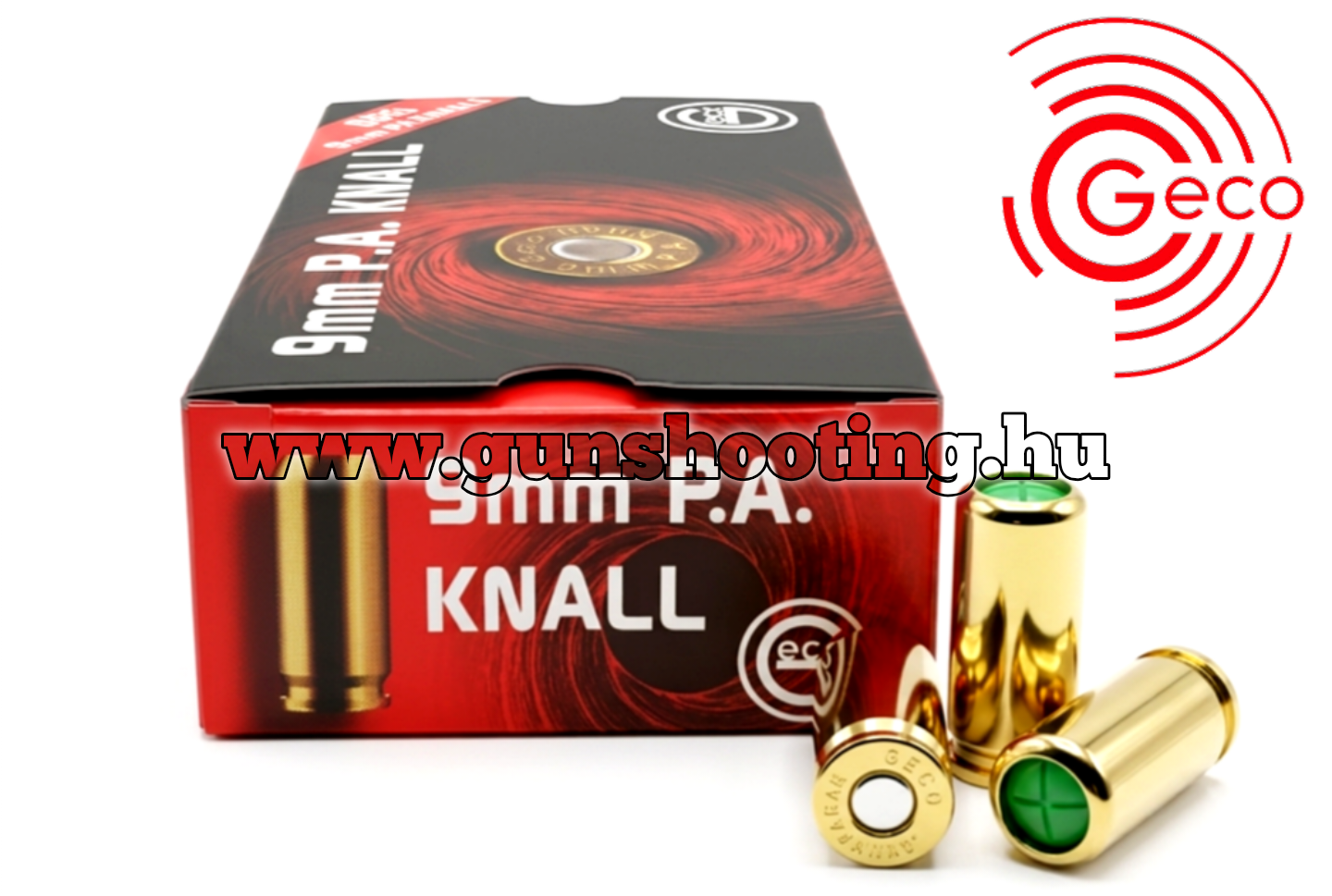 Geco 9mm P.A. Knall az egyik legnépszerűbb és legmegbízhatóbb öntöltő gáz-riasztó pisztolyokhoz szánt vaklőszer a piacon. A Geco (a RUAG csoport tagja) híres a szigorú minőségellenőrzéséről, így ez a töltény különösen ajánlott olyan fegyverekhez, amelyek érzékenyek a lőszer minőségére.