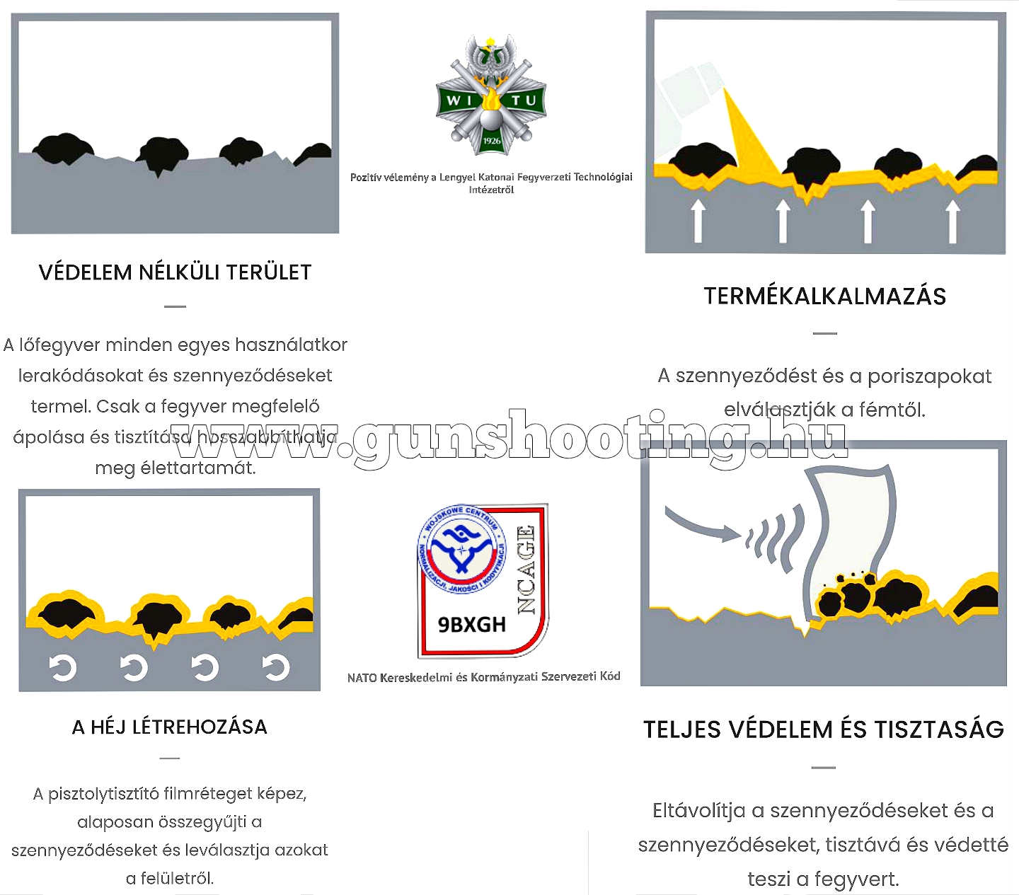 Ez a termék ideális választás sportlövőknek, vadászoknak és fegyverrajongóknak, akik olyan megoldást keresnek, amely gyors (Cleans Fast), nem irritáló és megvédi a fegyver élettartamát a káros lerakódásoktól.