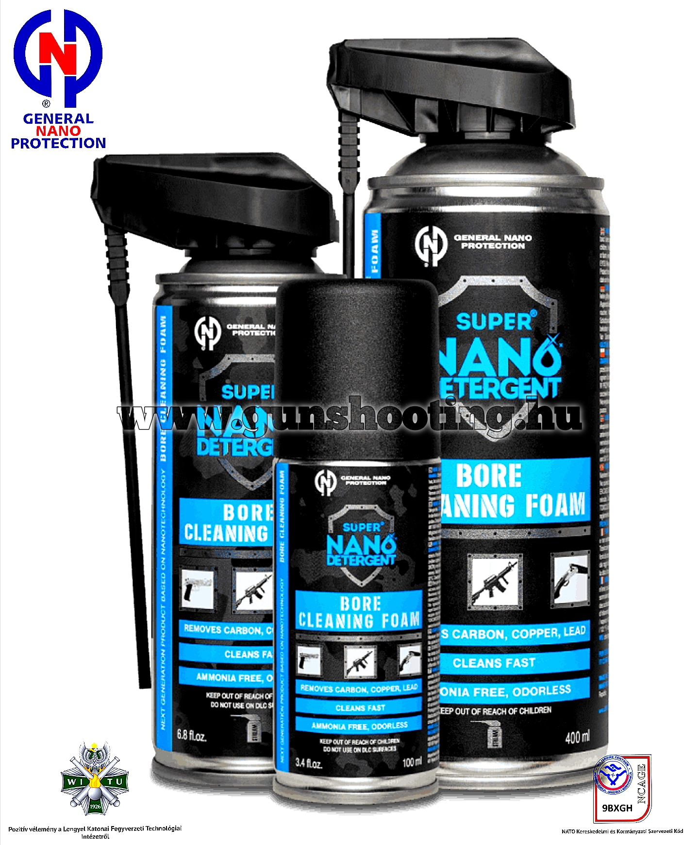 A GNP Super Nano Detergent egy új generációs, nanotechnológián alapuló tisztítóhab, amelyet kifejezetten lőfegyverek csövének (furatának) gyors és alapos tisztítására fejlesztettek ki. Hatékonyan távolítja el a makacs lerakódásokat 10 perc alatt, miközben kíméli a fegyver szerkezeti anyagait.