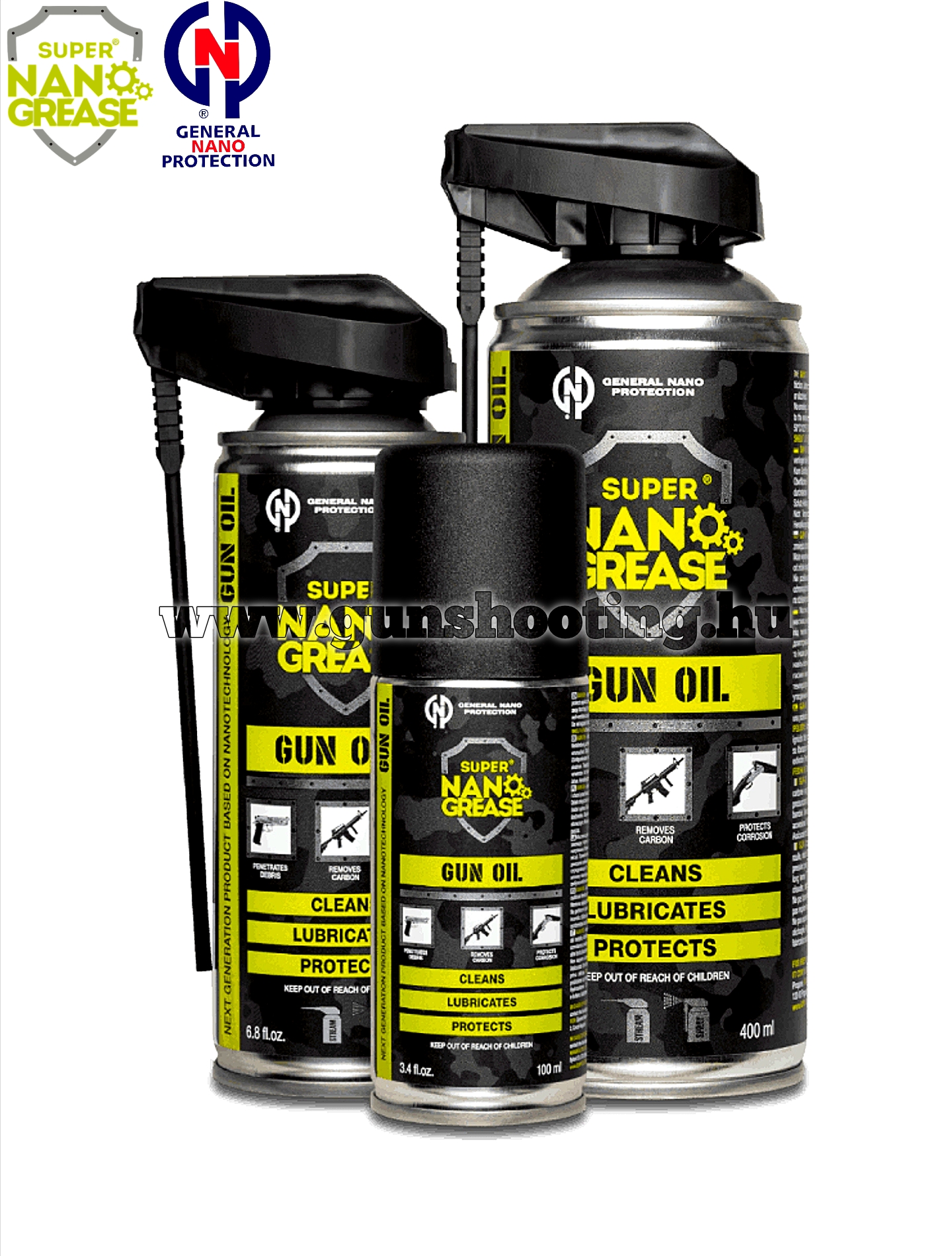 A Super Nano GUN OIL egyedi formulája eltávolítja a kormot, kiszorítja a nedvességet, nehezen hozzáférhető helyeket is áthatol és keni az alkatrészeket. Többszörös tartósságot biztosít, és hosszú ideig védelmet nyújt a súrlódás és korrózió ellen. A termék jelentősen meghosszabbítja a lőfegyverek élettartamát.