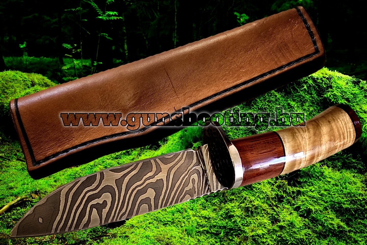 Penge: A lenyűgöző megjelenésű, minőségi Böller K600 - K720 acélból készült Csavart Damaszk pengét 21 rétegben kovácsolták.