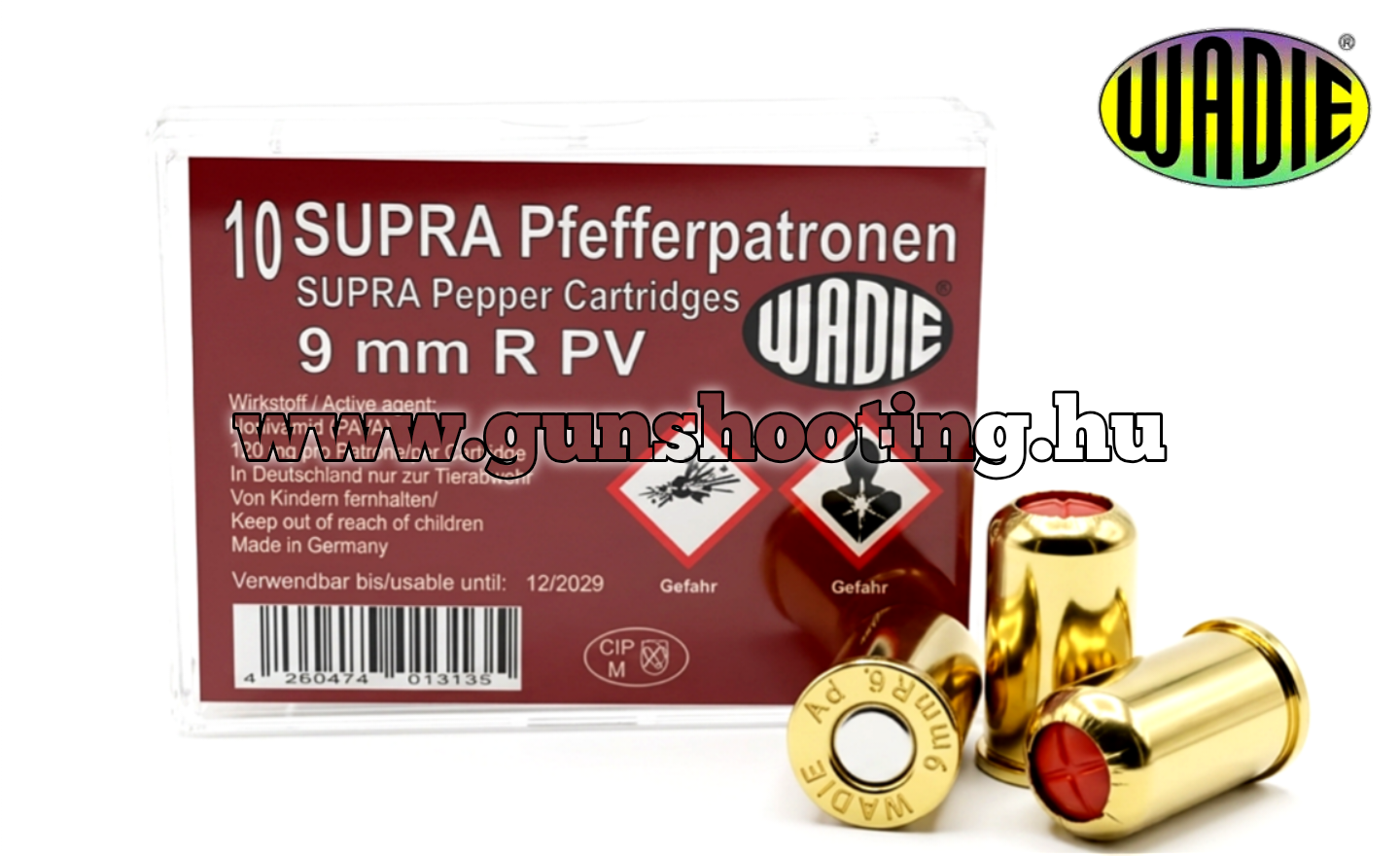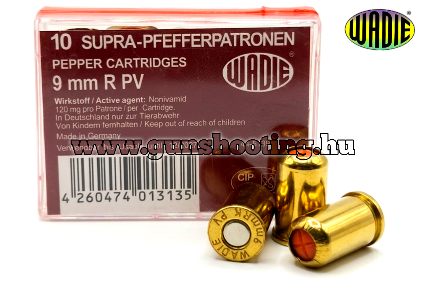 Wadie 9mm R PV Pepper Supra 10/doboz KÉSZLETEN VAN! Üzletünkben megvásárolható! Árakkal és egyéb információkkal kapcsolatban, személyesen üzletünkben érdeklődjön!